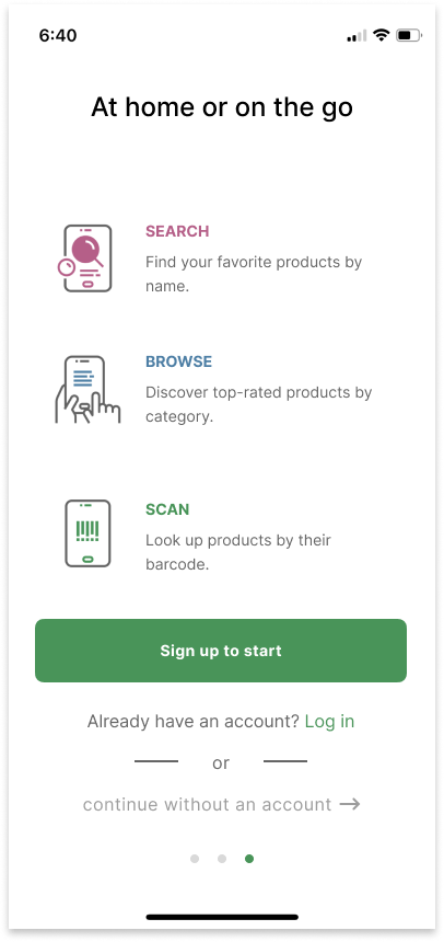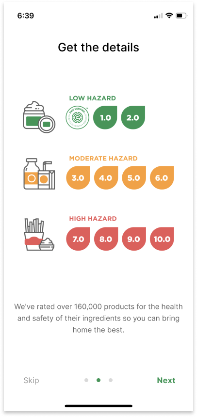 In their Healthy Living app, the Environmental Working Group (EWG) highlights the most significant features in their feature-based onboarding flow. However, the case for why these features are so invaluable to the users isn’t made. With some content reframing, that connection can be made crystal clear.