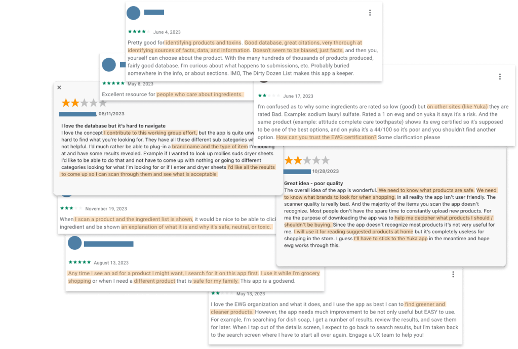 I am in no way affiliated with or have completed work for EWG. This is only to serve as a speculation of the impact of changes to the user experience. It does not reflect the constraints and limitations of the designers working on this product.